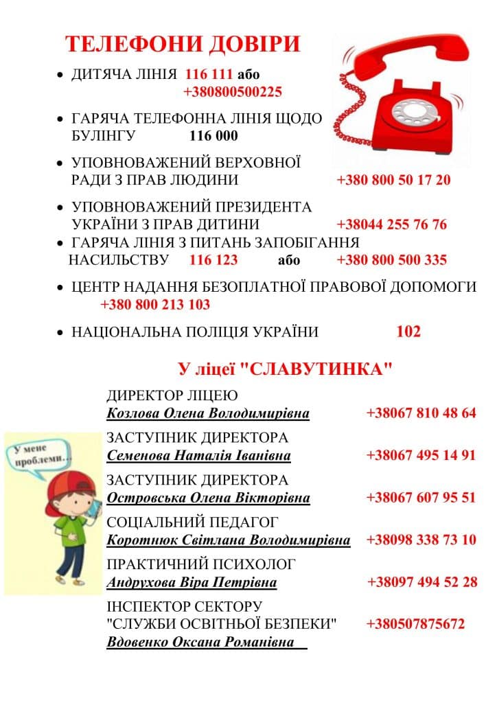 - Ви можете надіслати анонімного електронного листа на скриньку довіри ліцею “Славутинка” ckrynka_doviry@osvitakp.in.ua